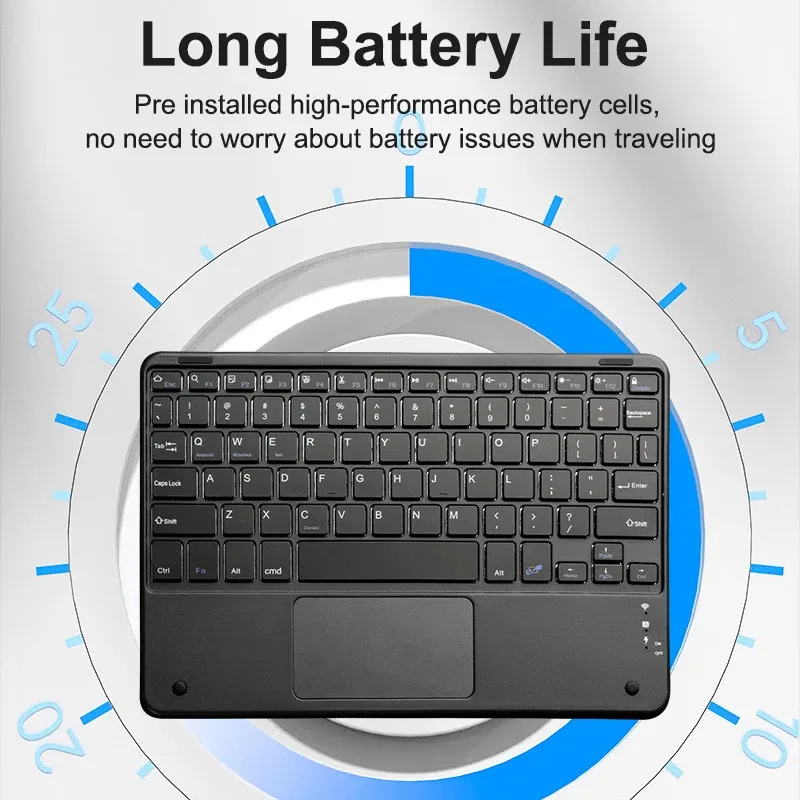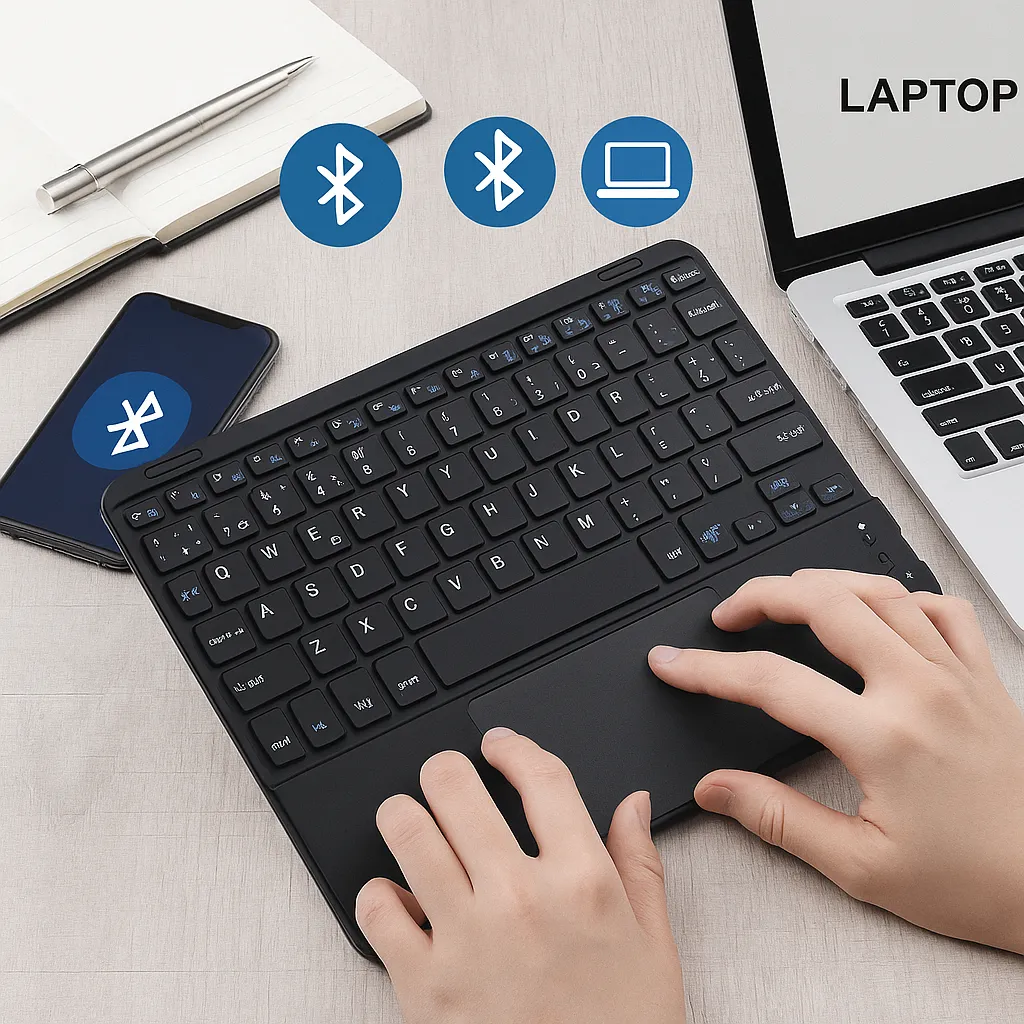 Este teclado Bluetooth universal con touchpad integrado es el compañero perfecto para quienes buscan productividad, estilo y comodidad en cualquier lugar. Diseñado pensando en la versatilidad, este teclado es compatible con una amplia gama de dispositivos como tablets, iPads, smartphones, laptops y PCs. Su diseño ultra delgado, liviano y moderno lo convierte en una excelente opción tanto para el hogar como para el trabajo o los estudios.